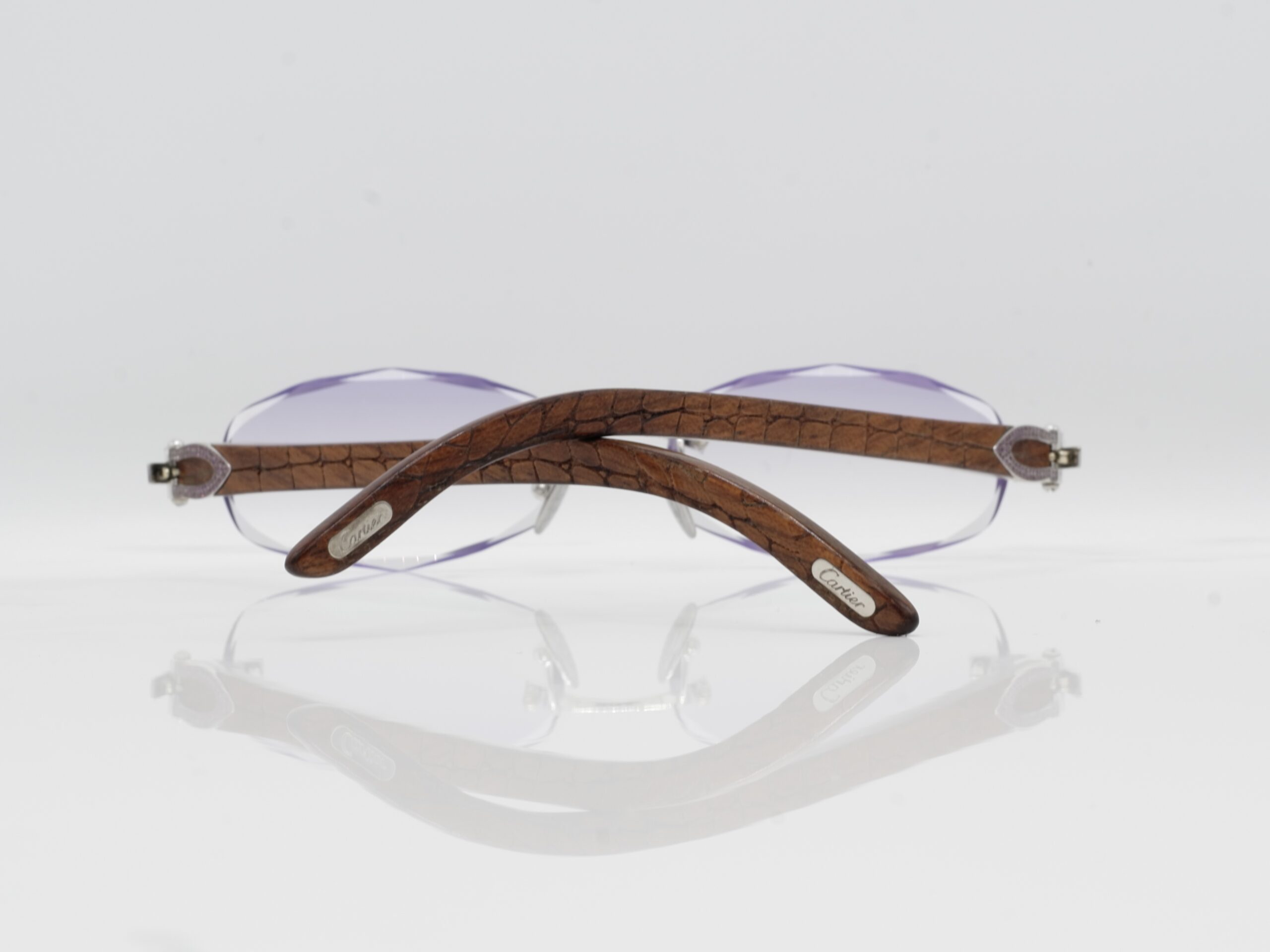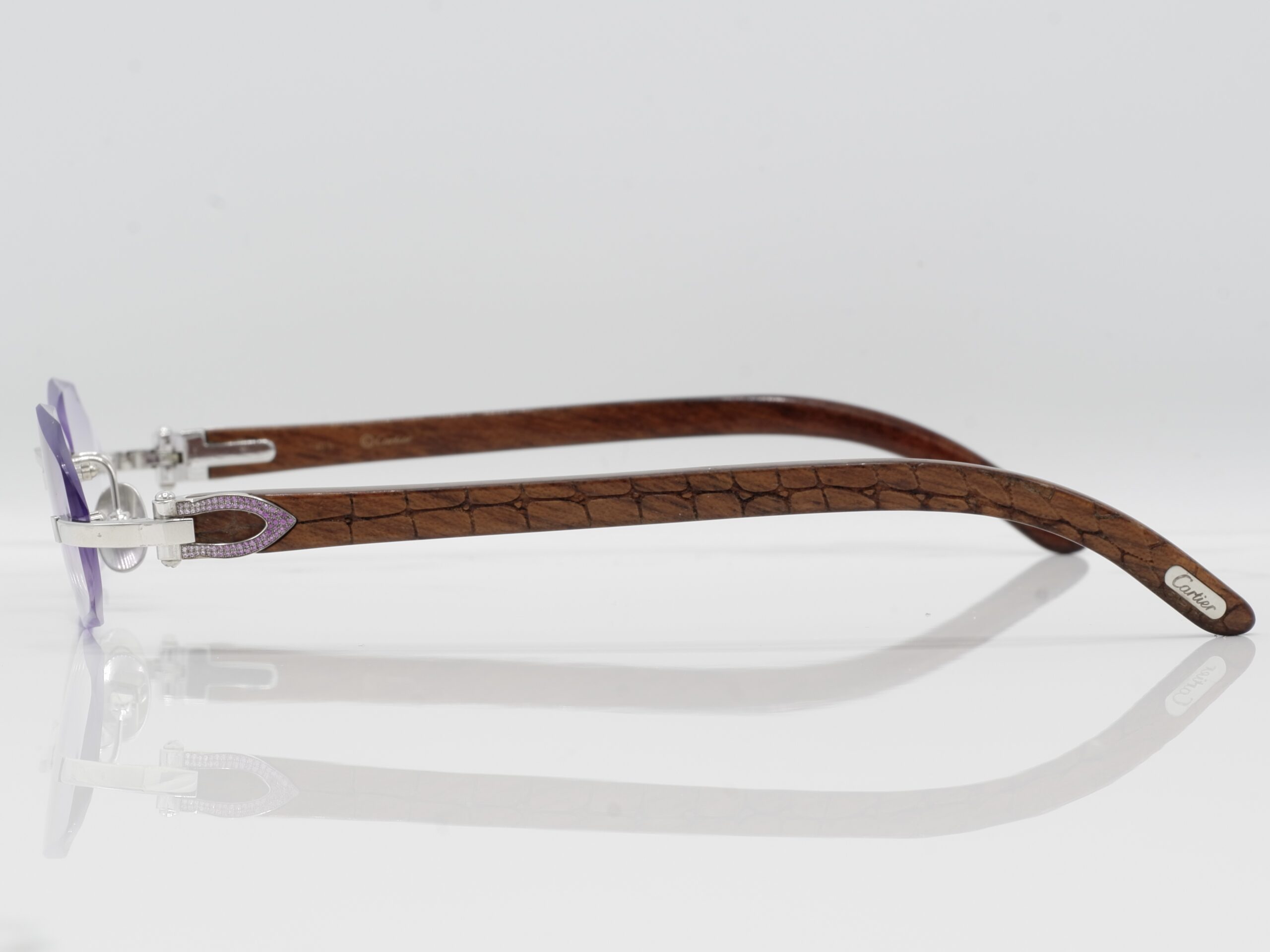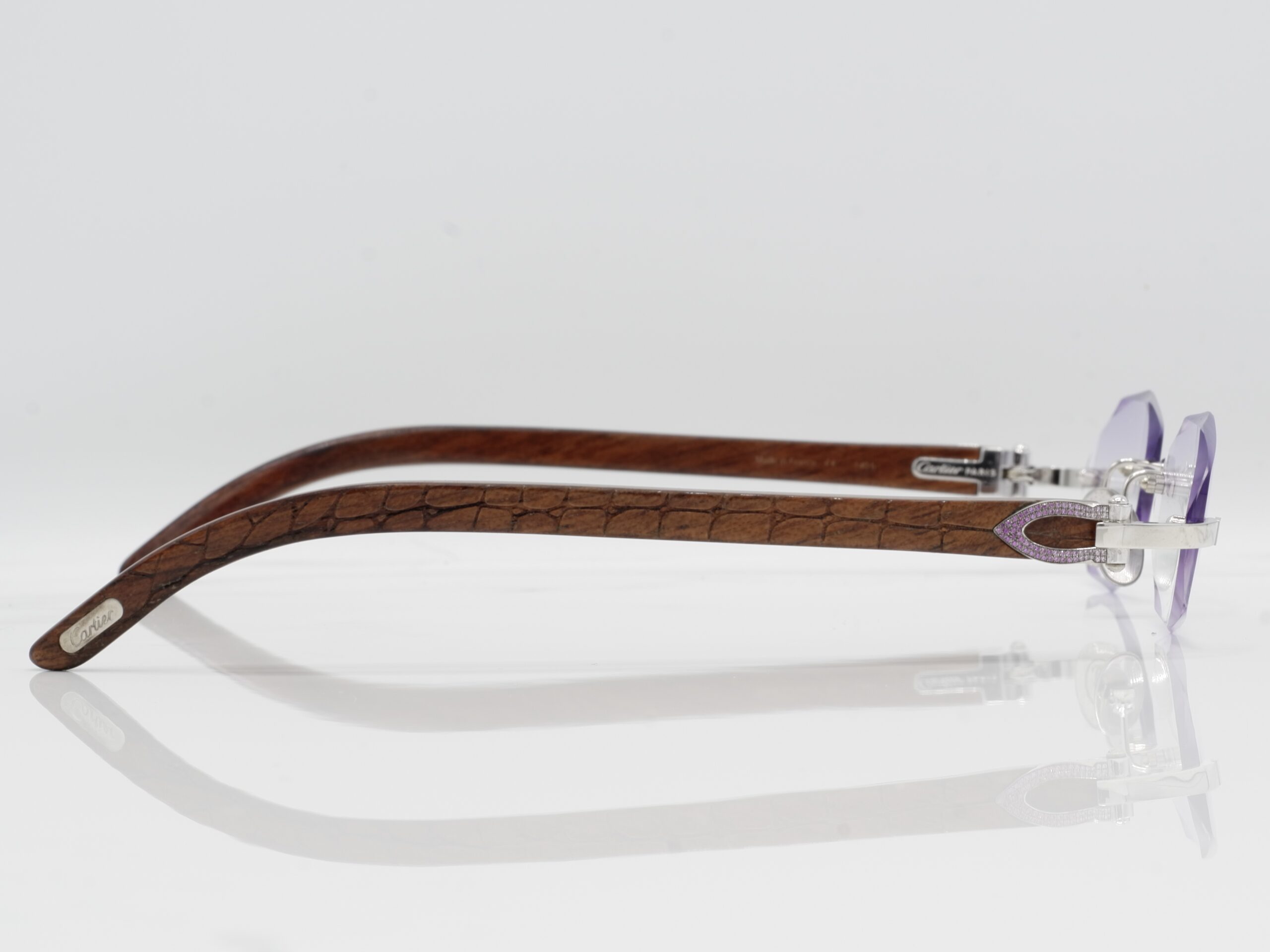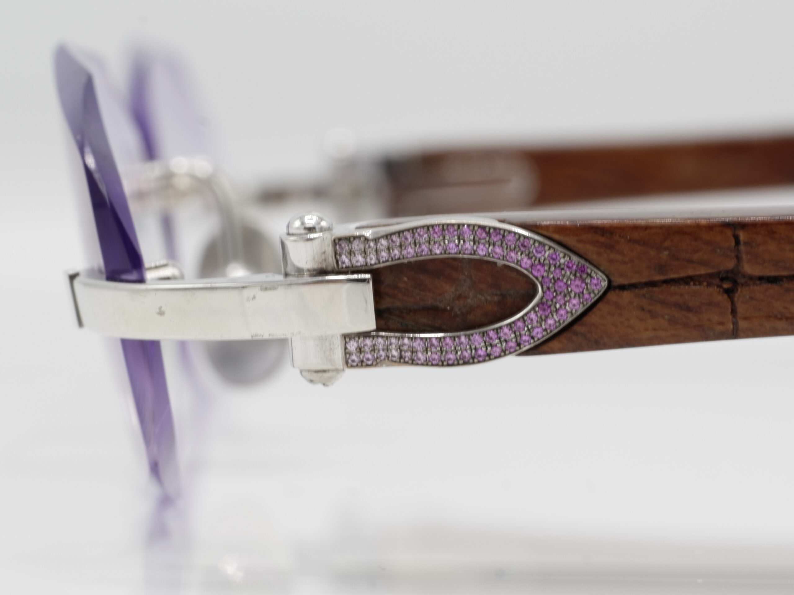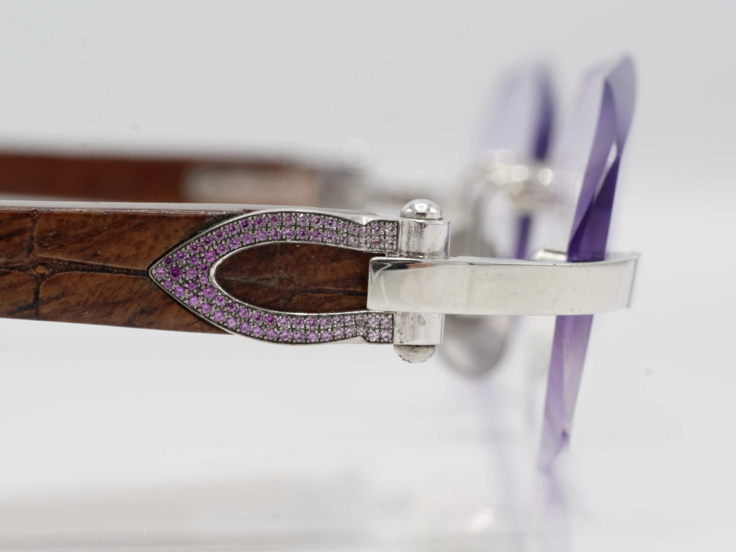 18CT platinum plated vintage alligator wood Cartier sunglasses with custom set pink sapphires.
