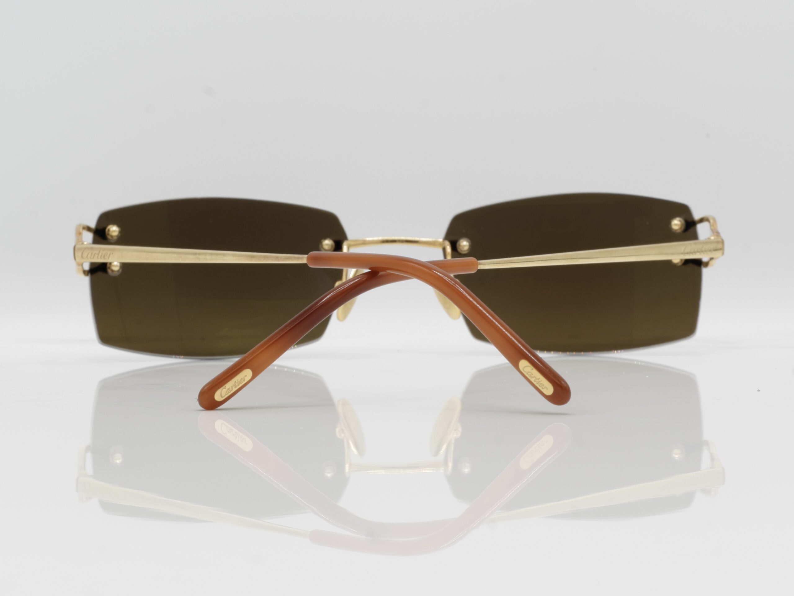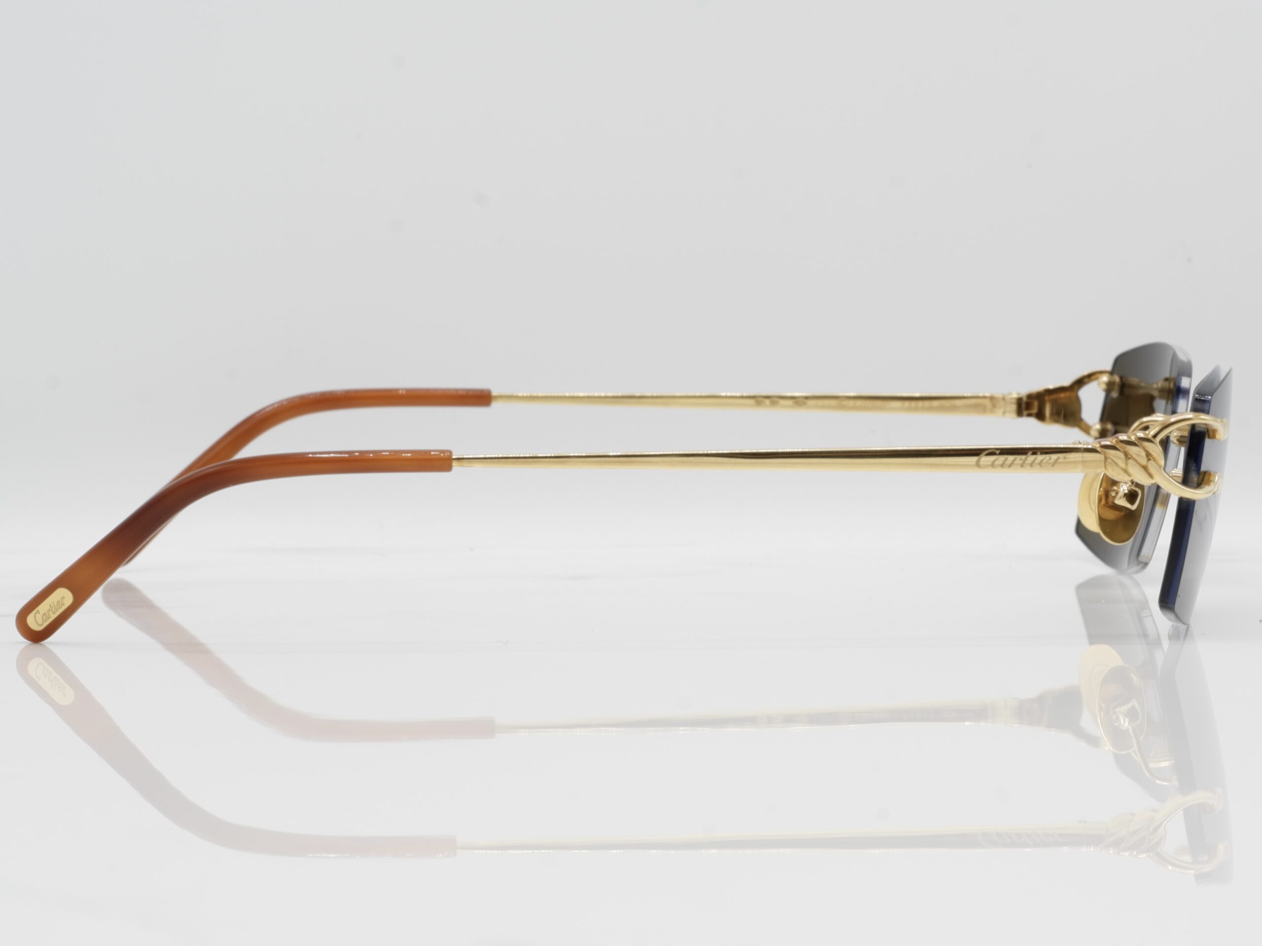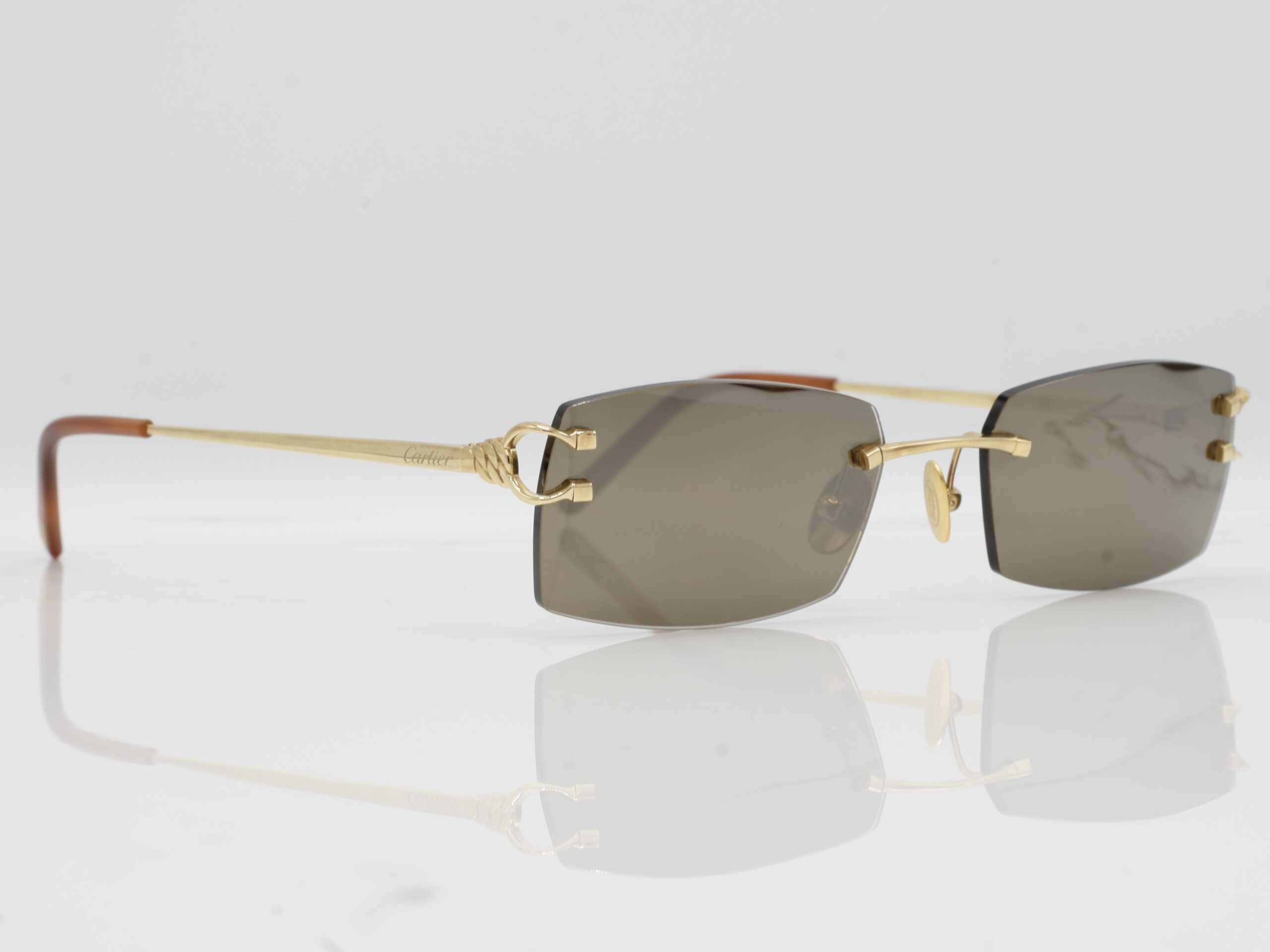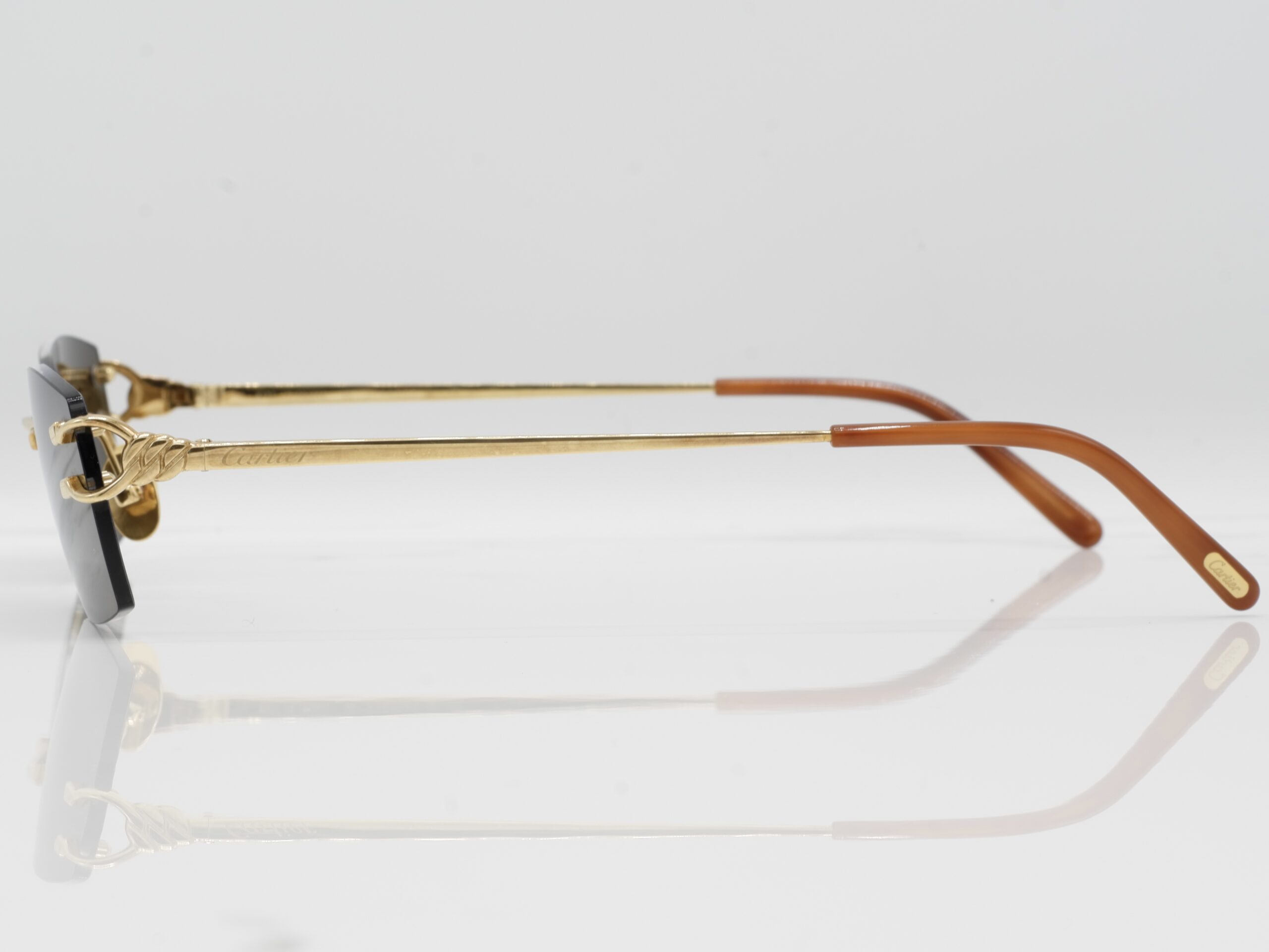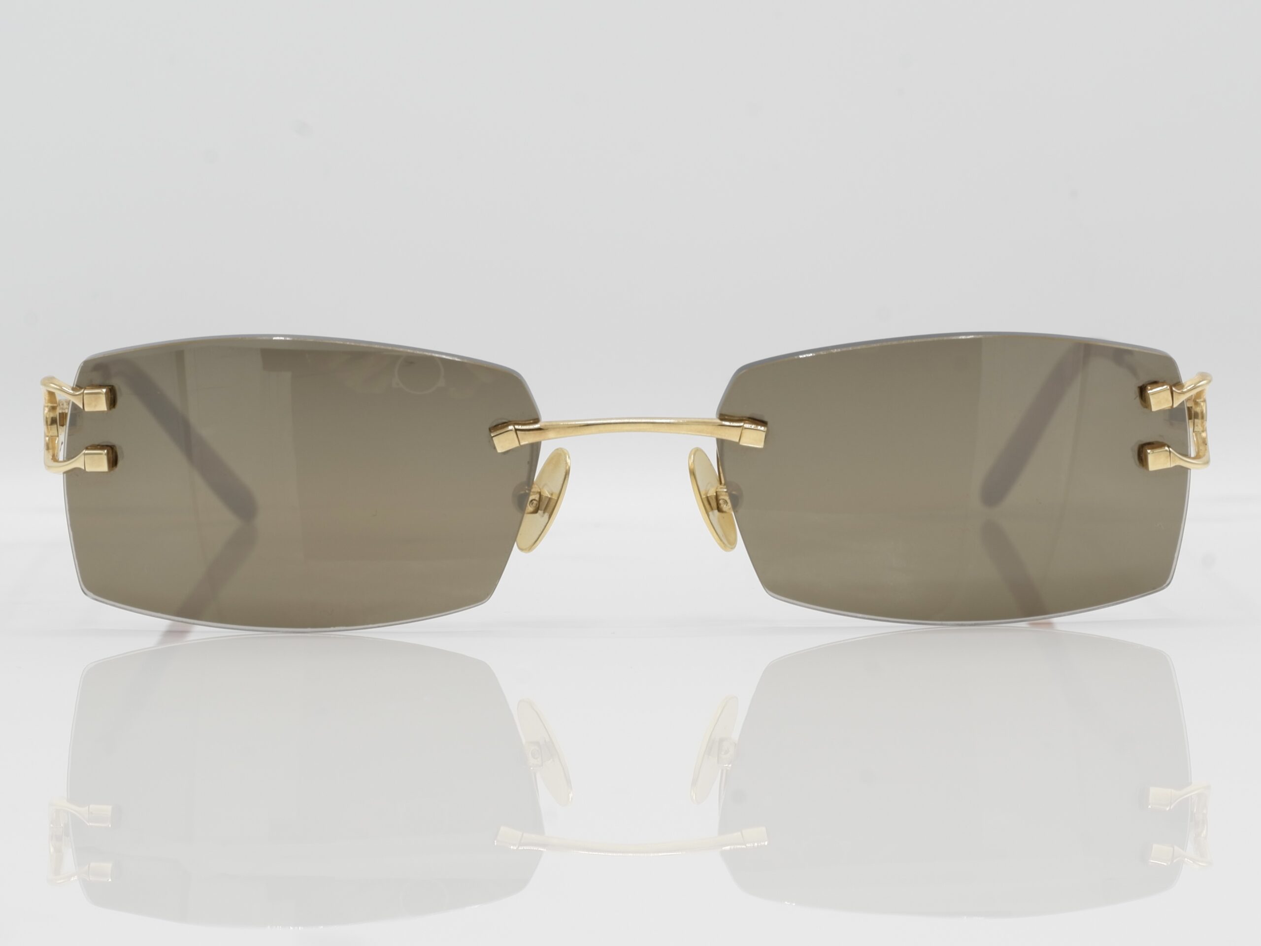 Maybe one of the most and worst copied Cartier sunglasses you would see on the black market, but dont get it twisted, these are the real deal. 18 carats of solid gold, made by Cartier. Surely you wont see anyone else rocking these.